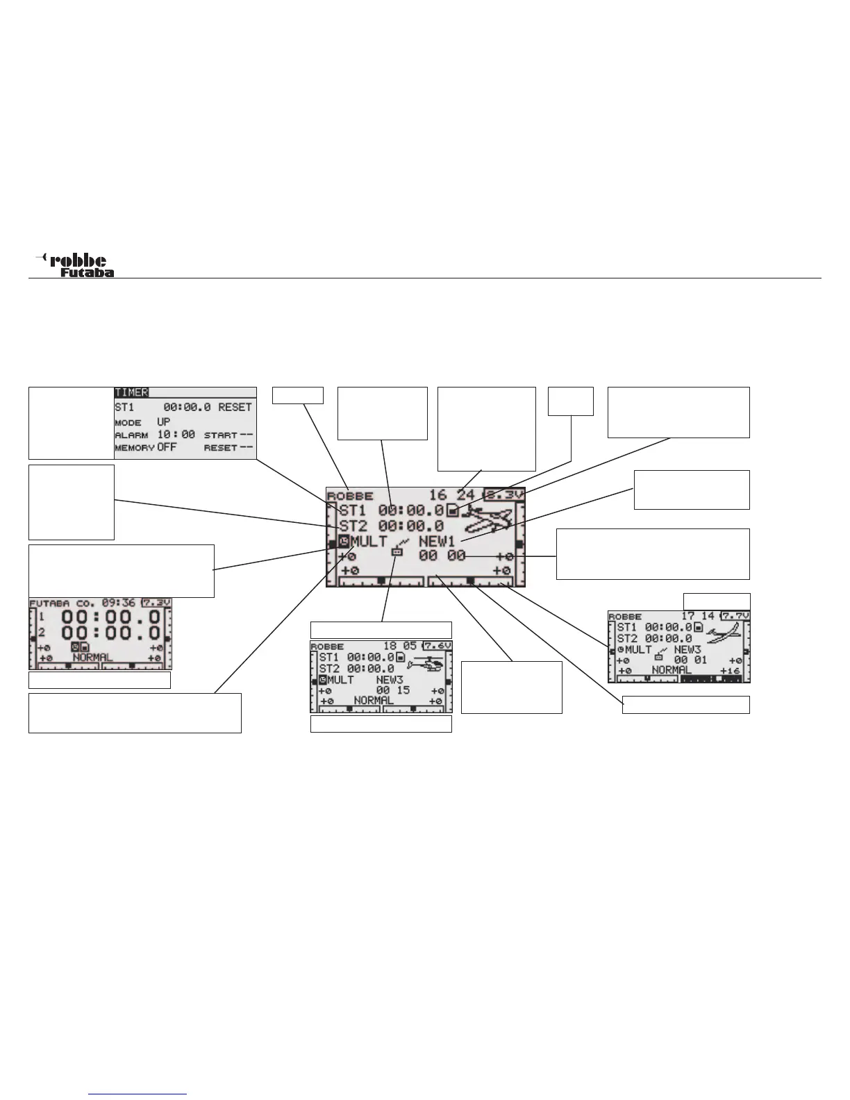 The most important information about transmitter programming is displayed in the Home/Start Display. These direct menus can be