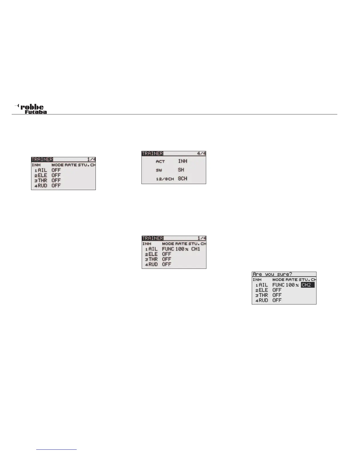 On the 4 pages (1/4-4/4) of the „TRAINER” menu, all basic