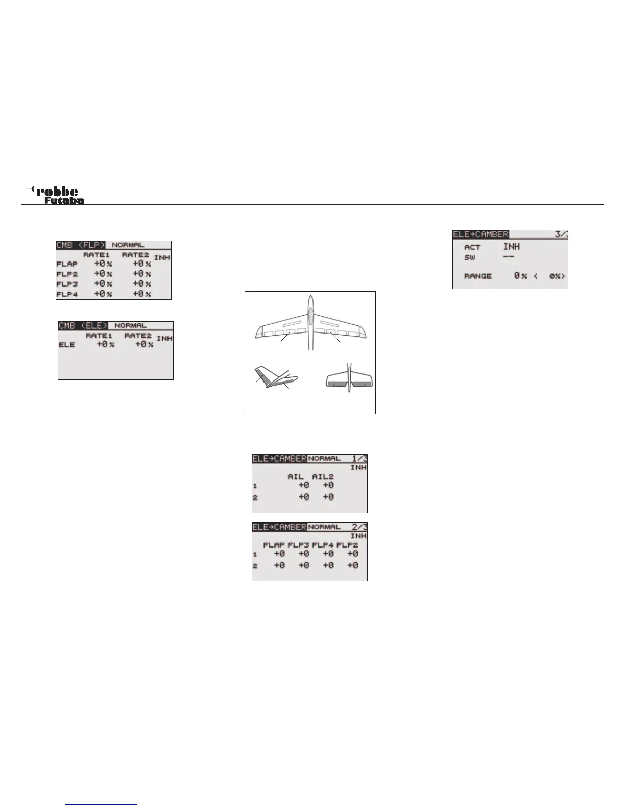 The ELE-> CAMBER menu mixes camber flaps with elevator.