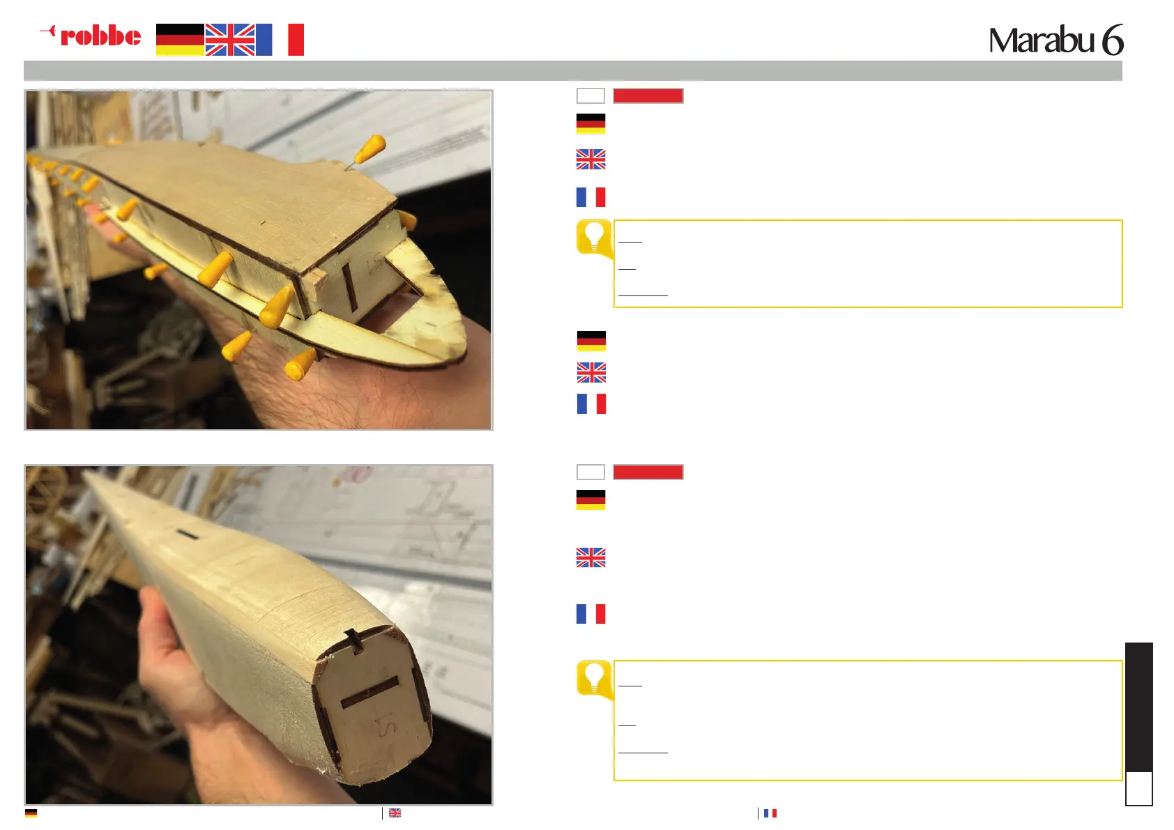 ment exact est contrôlé. Avant que le patin ne soit collé, le fond du fuselage prend déjà sa