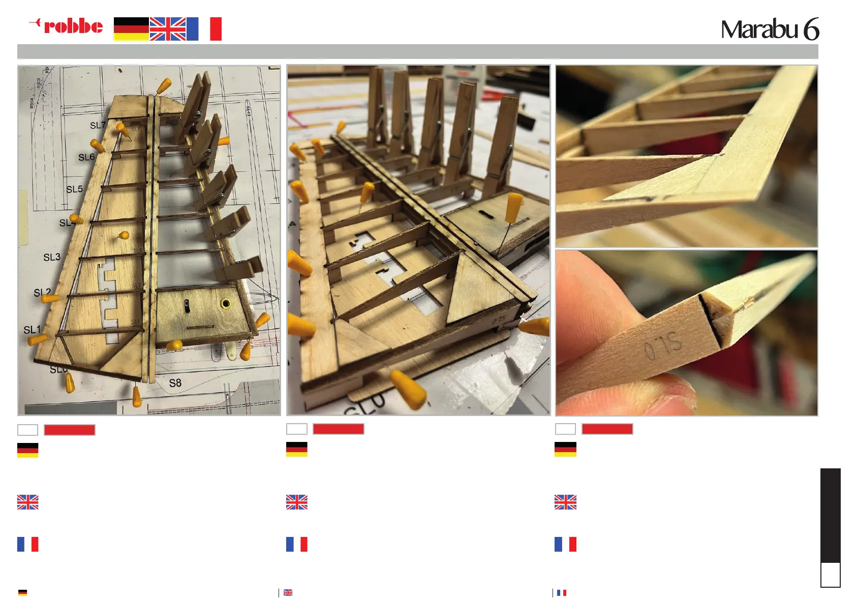 Abkürzungen: Mittelüssiger Sekundenkleber (SK), Holzleim (HL), 10min EpoxyHarz (EH)