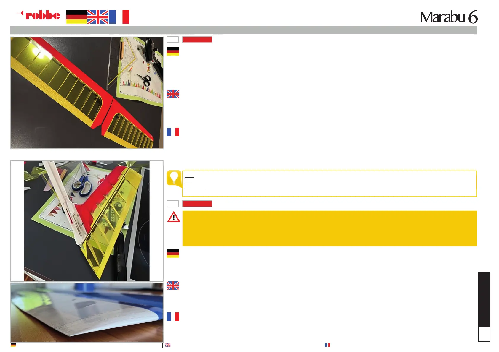 Attention:Important ! Vérier que la surface n‘est pas déformée après le lmage ! Les deux côtés de l‘aile doivent avoir la