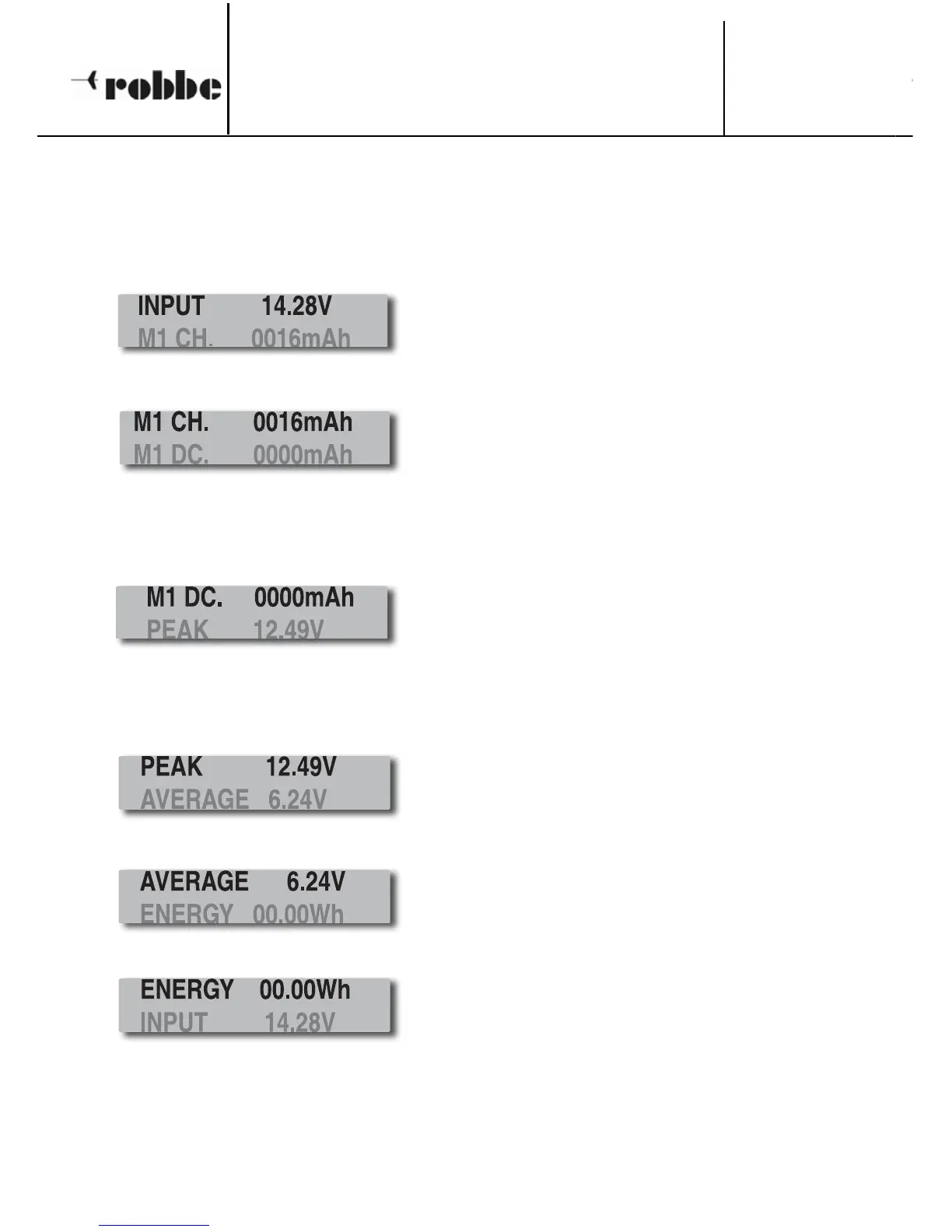 DISPLAY OF THE LAST BATTERY CHARGE PROCESSES (M1 ... M5)