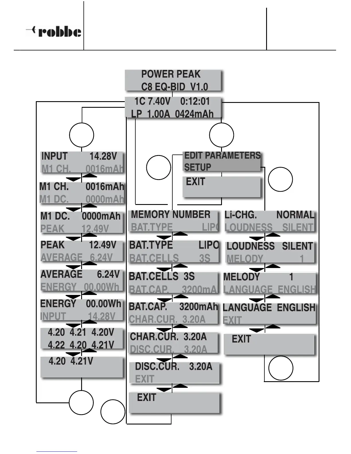 ROBBE Power Peak C8 EQ-BID - Menu Structure Visualization; Navigating the Chargers Menus