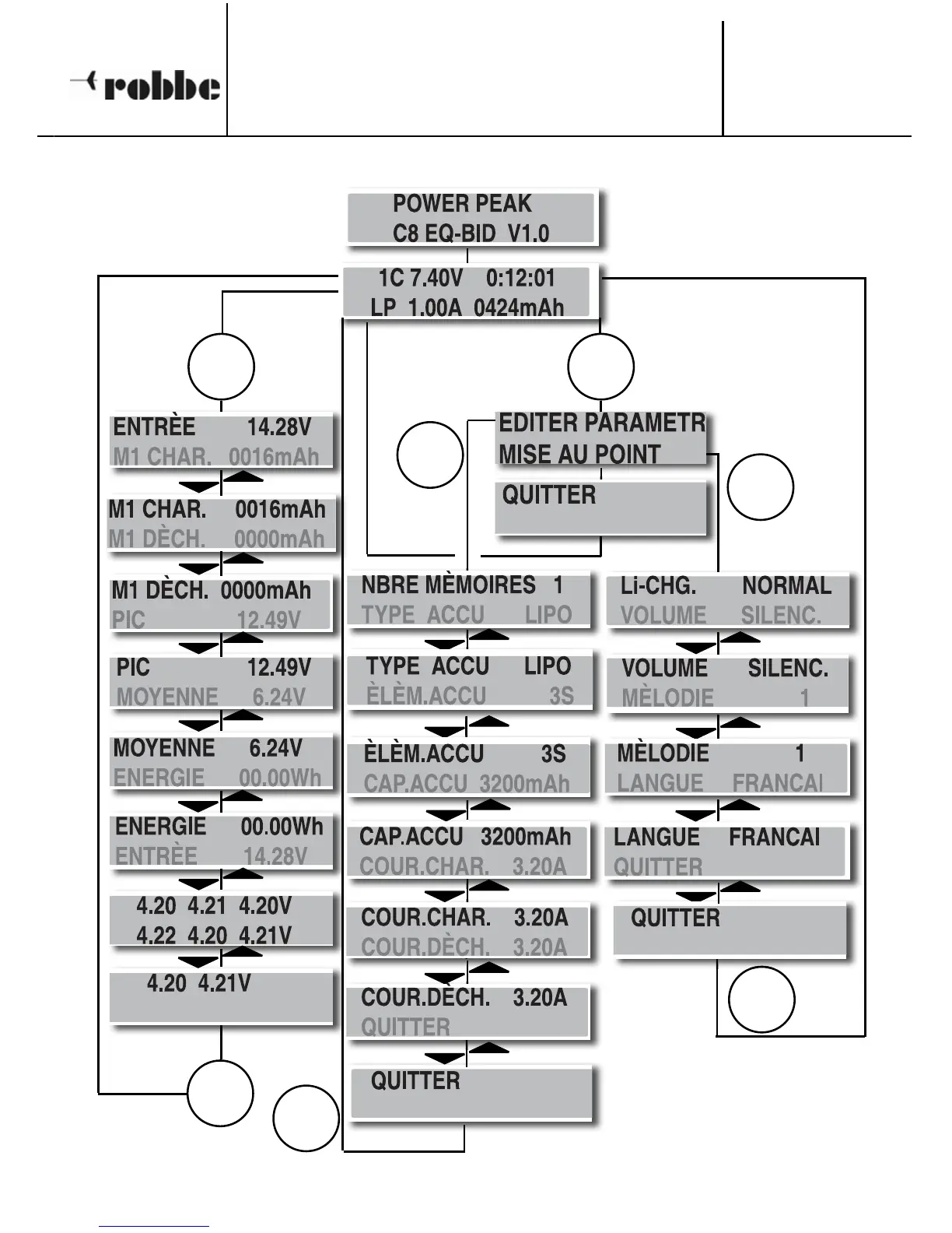 ROBBE Power Peak C8 EQ-BID - Structure du Menu