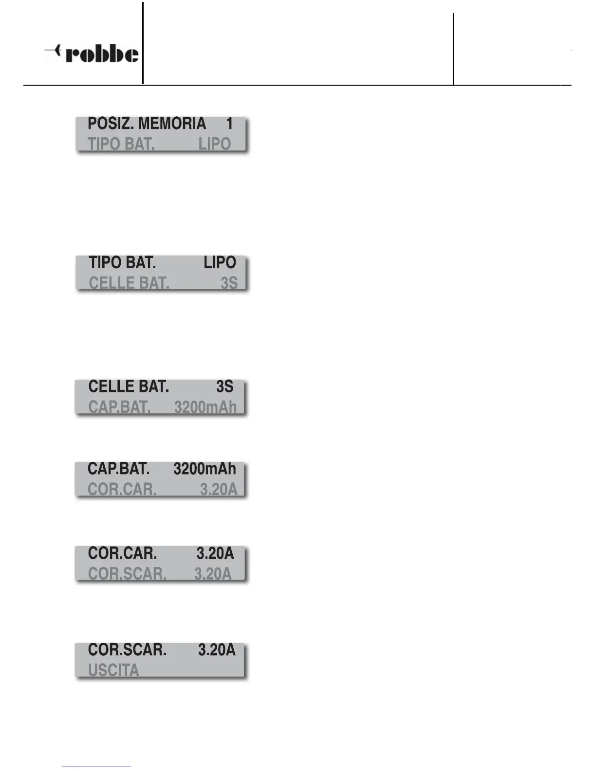 impostati in precedenza come corrente di carica, capacità, numero di celle, ecc. Il numero