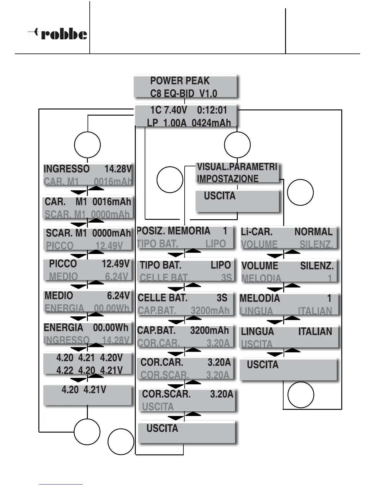 ROBBE Power Peak C8 EQ-BID - Struttura Dei Menù