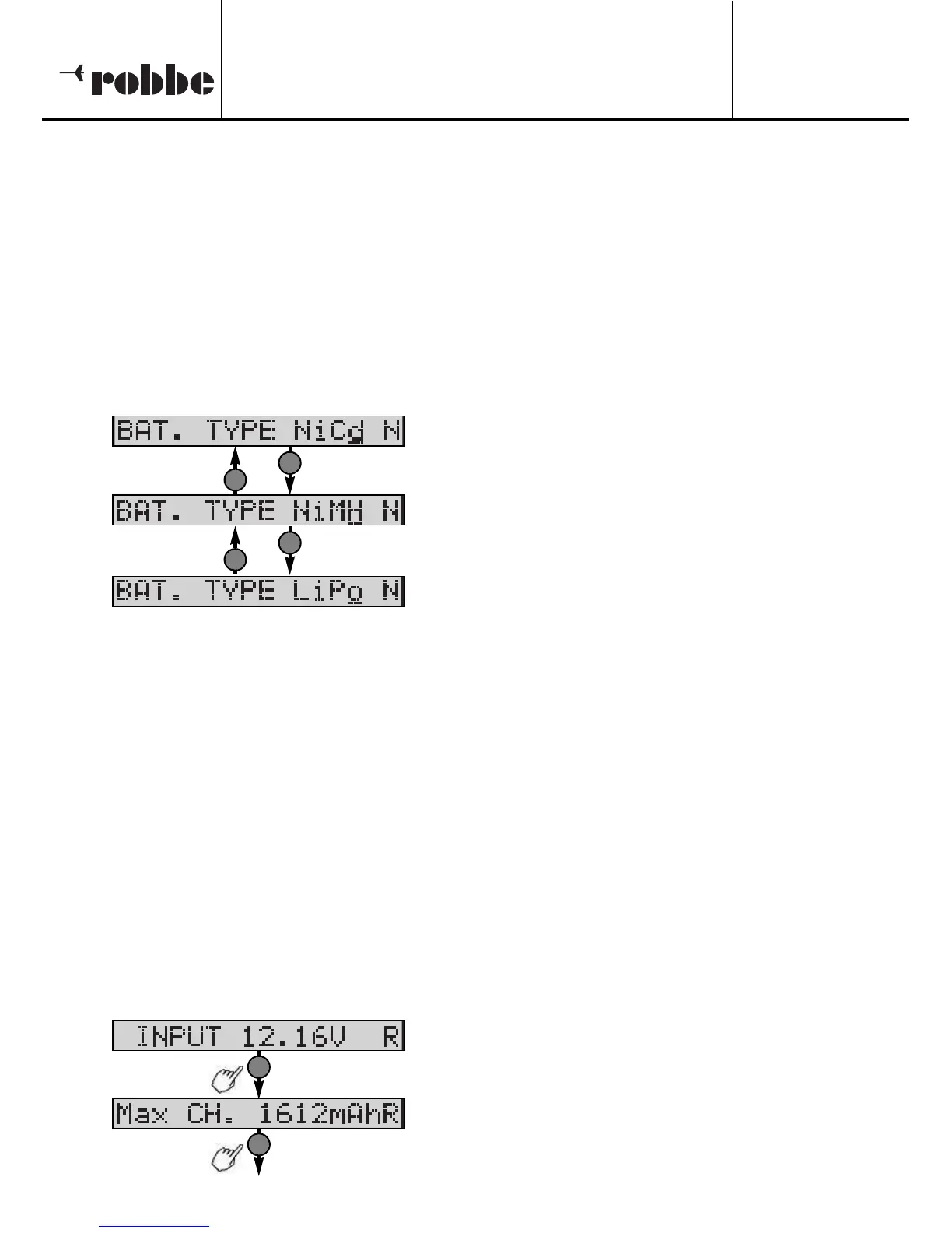 e la scelta del tipo di batteria. Con il tasto “SELECT” ci si sposta alla visualizzazione suc-