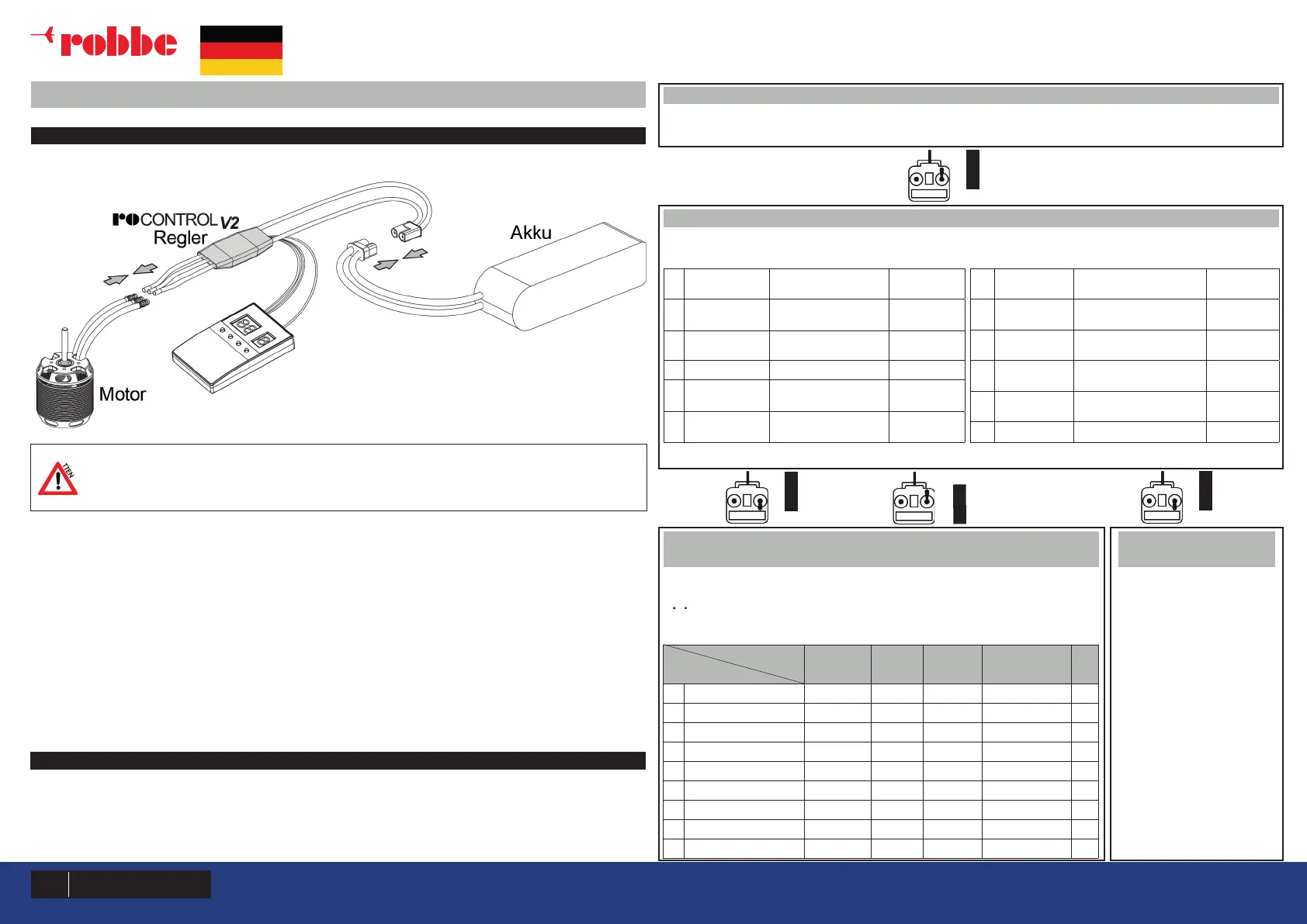 tönen. Bewegen Sie den Gasknüppel innerhalb von 3 Sekunden nach dem Ertönen des jeweiligen Signal in die untere