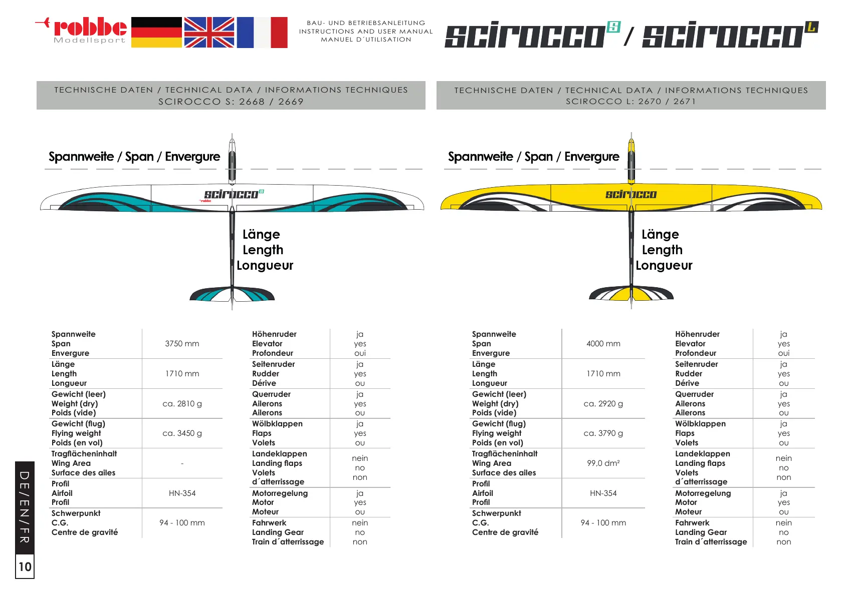 ROBBE Scirocco - TECHNISCHE DATEN; TECHNICAL DATA; INFORMATIONS TECHNIQUES SCIROCCO S: 2668; 2669; TECHNISCHE DATEN; TECHNICAL DATA; INFORMATIONS TECHNIQUES SCIROCCO L: 2670; 2671
