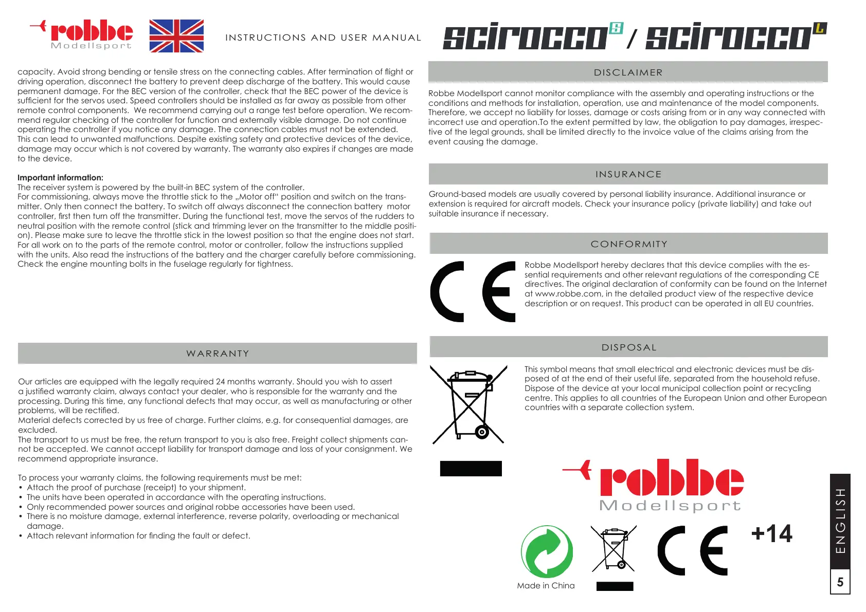 permanent damage. For the BEC version of the controller, check that the BEC power of the device is