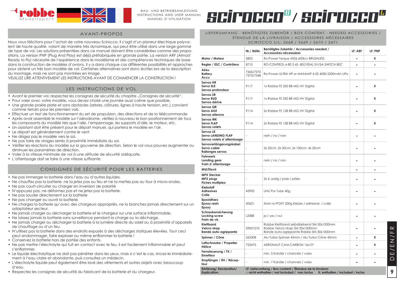 -: nicht enthalten / not included / non inclus X: enthalten / included / inclus