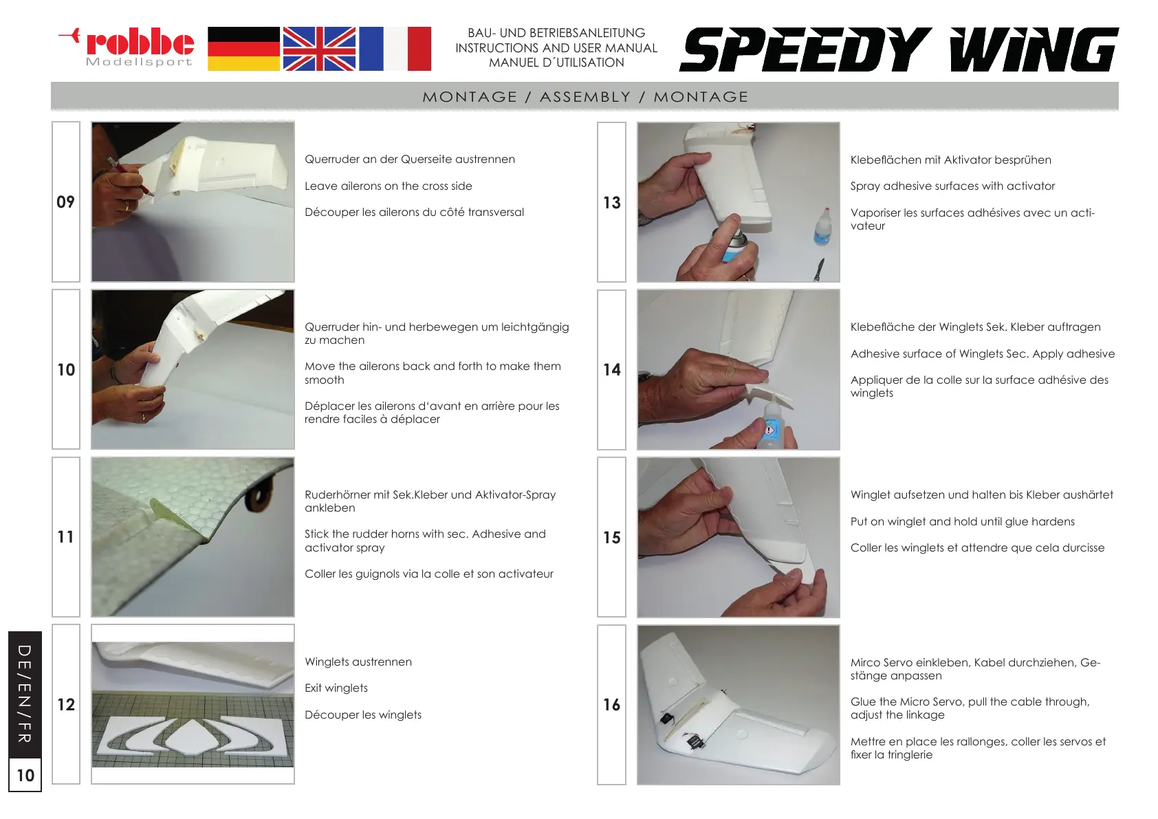 Put on winglet and hold until glue hardens