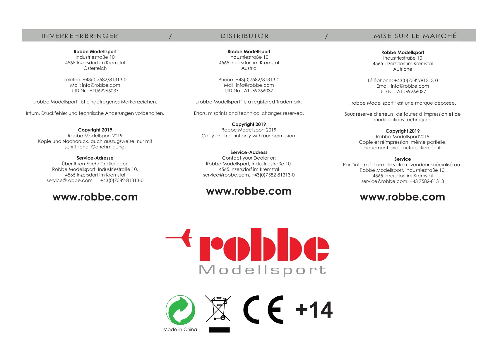 service@robbe.com, +43 7582-81313
