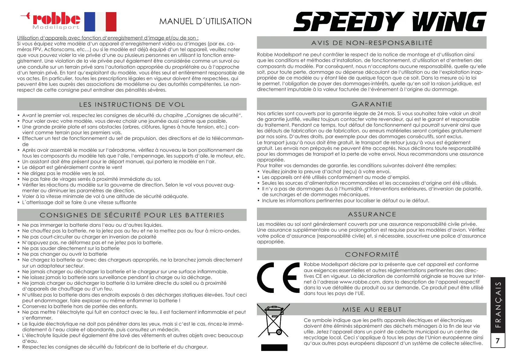 peuvent être lues auprès des associations de modélisme ou des autorités compétentes. Le non-