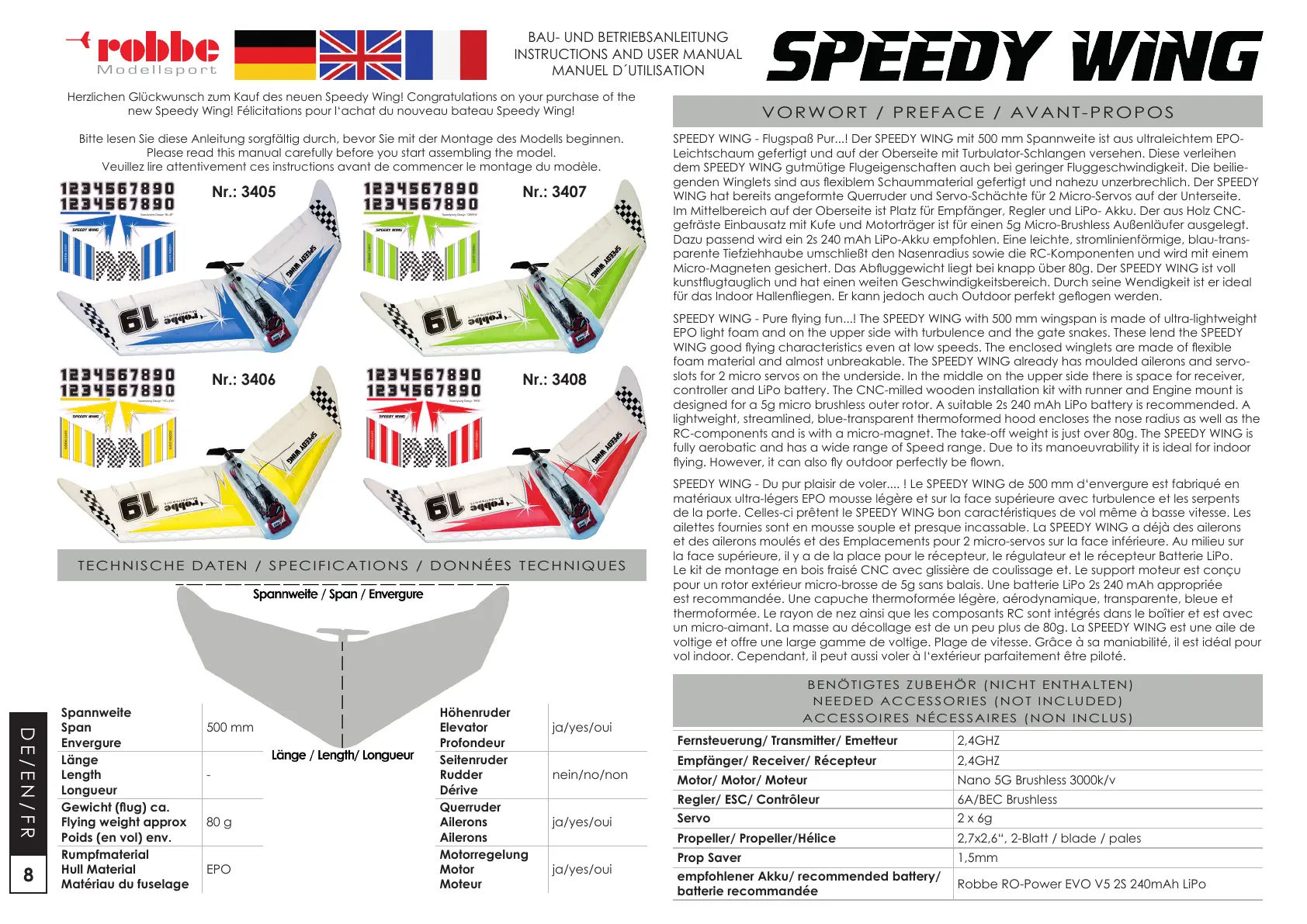 de la porte. Celles-ci prêtent le SPEEDY WING bon caractéristiques de vol même à basse vitesse. Les