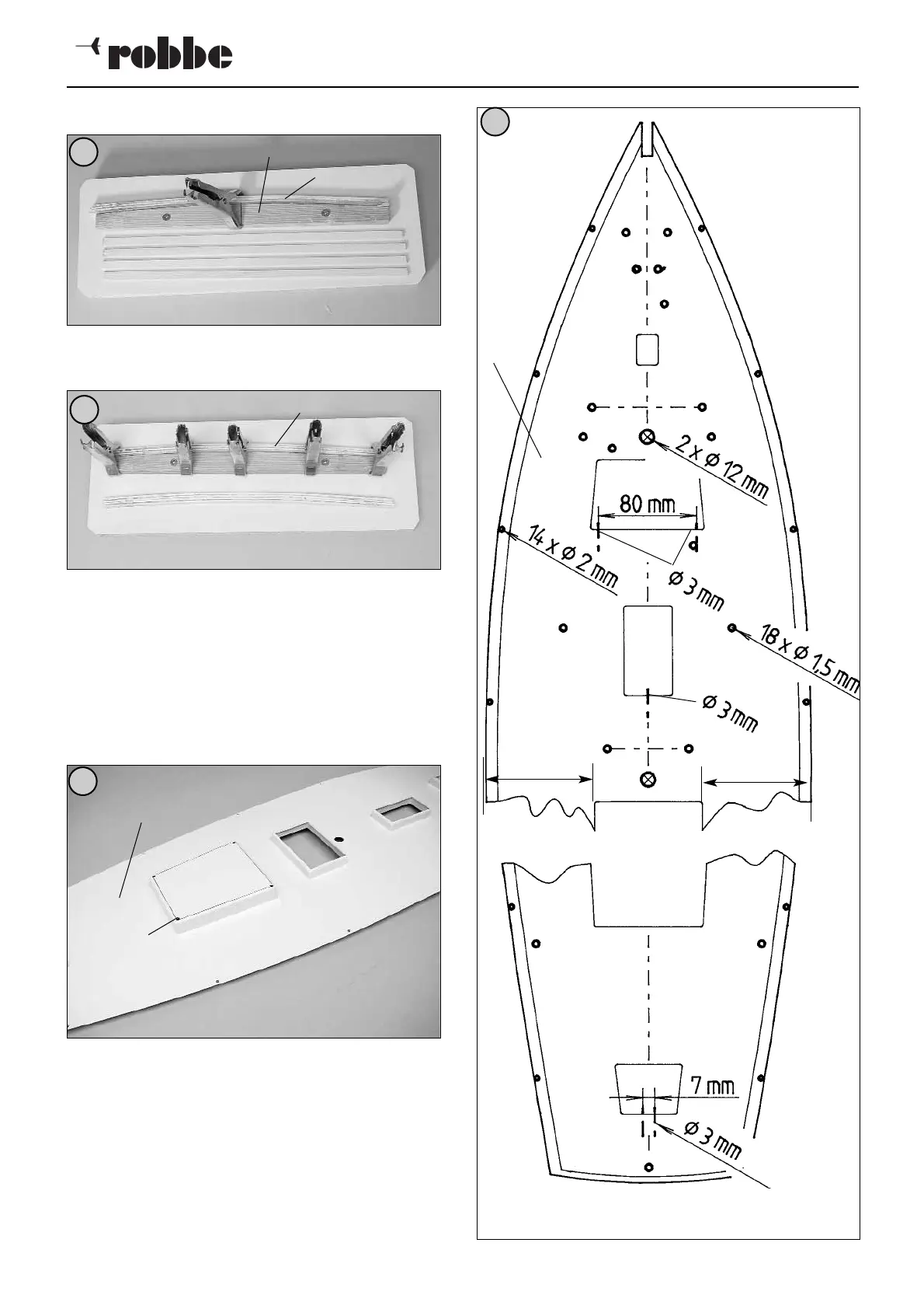 Fixierung des Decks mit dem Rumpf. Die 18 Bohrungen