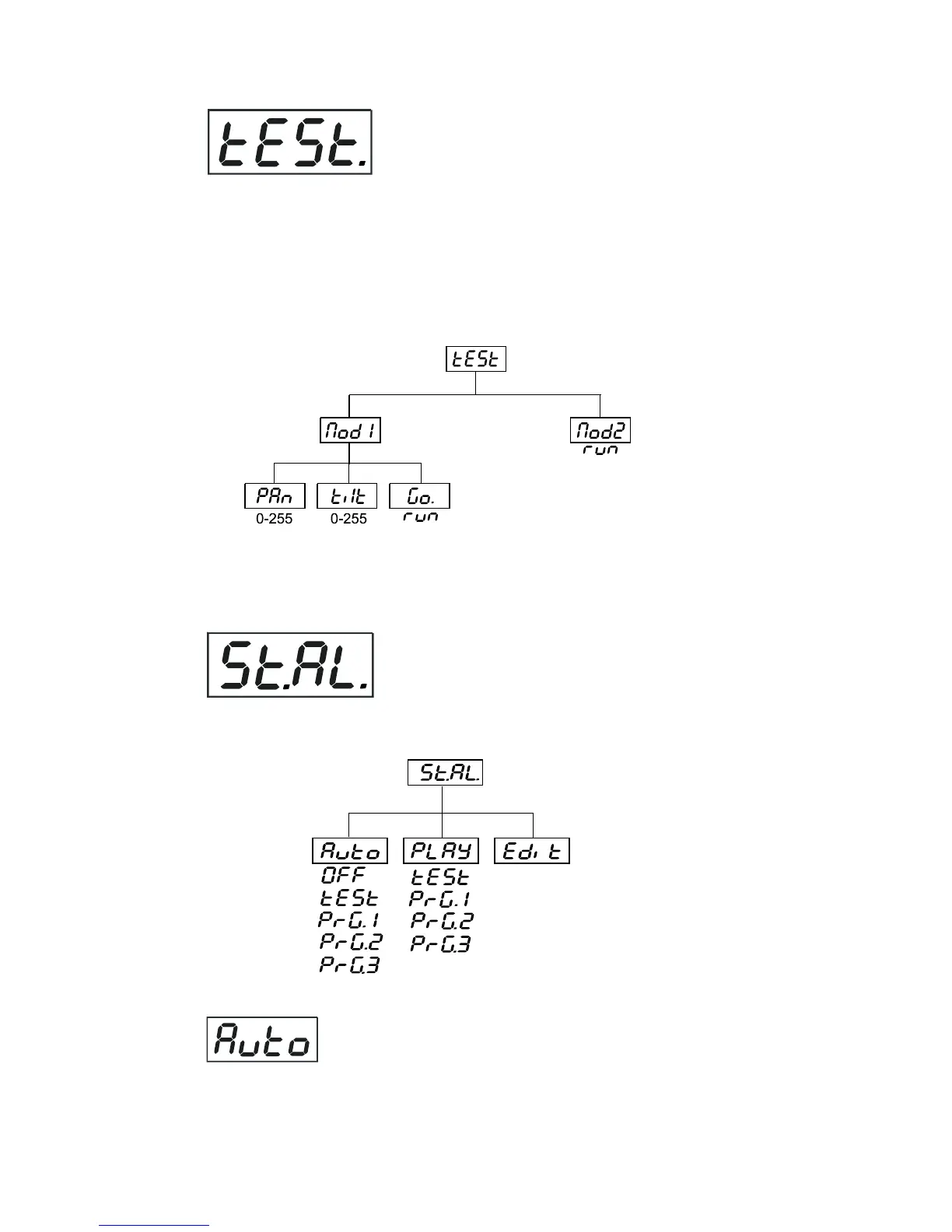 the fixture On.Use the [Up] and [Down] buttons to select desired program ("tESt"- bilt-in program) or "OFF" if you
