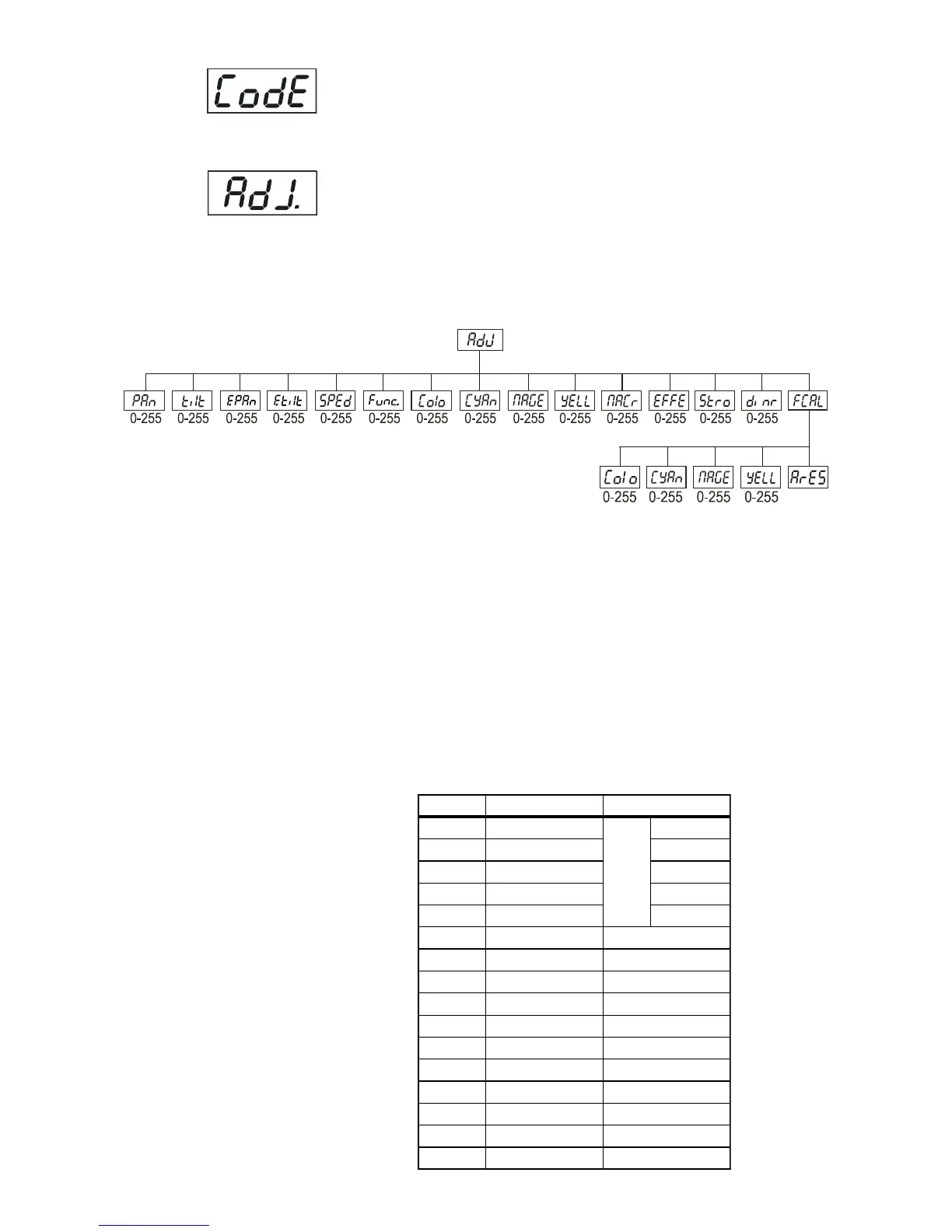 Tilt,F.Pan,F.Tilt, SPEd, Func,Colo, CYAn, MAGE, YELL, MACr, EFFE, Stro, dimr, FCAL" by which you can