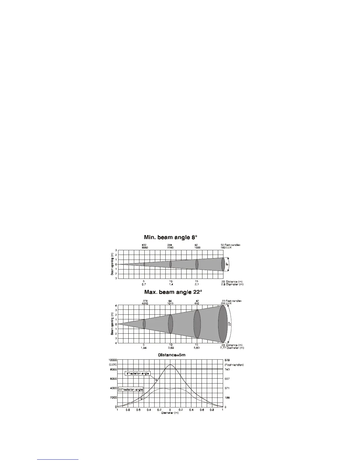 -Manualy adjustable beam angle from 8° to 22°
