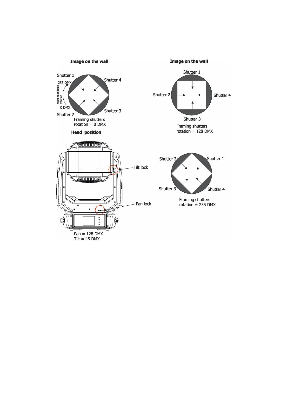 Framing system consists of four framing shutters. There is individual control of each shutter blade position