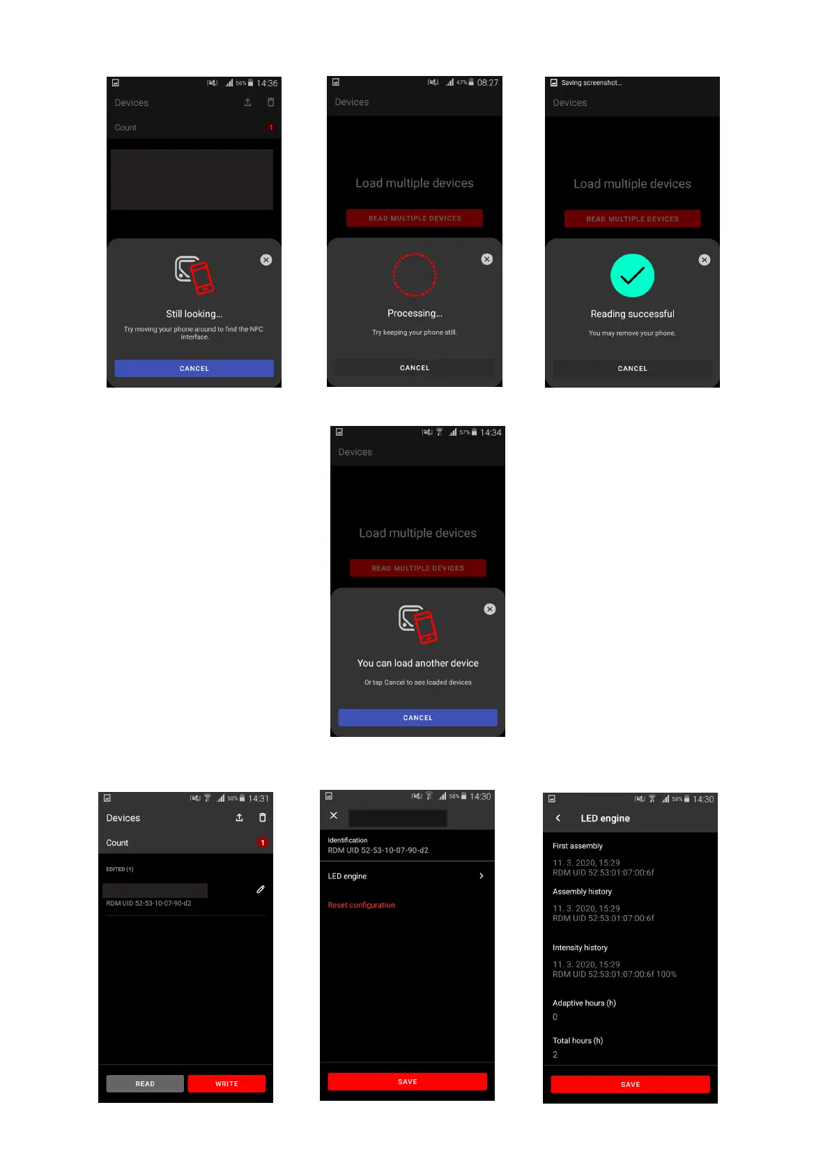 Touch the found LED module ("Robin Cuete LED module") and than touch "LED engine" to read information
