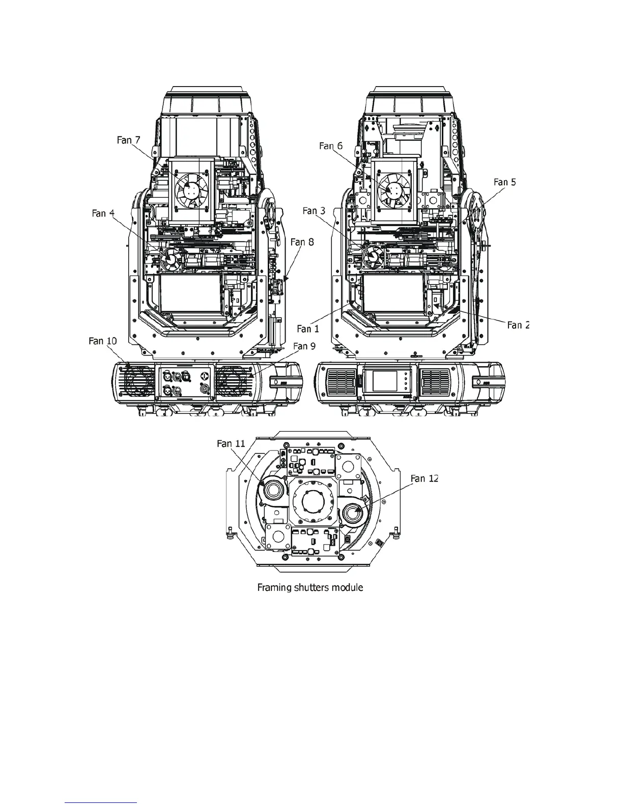 Robe Robin BMFL Blade - Fan Locations; Fan Diagram and Identification