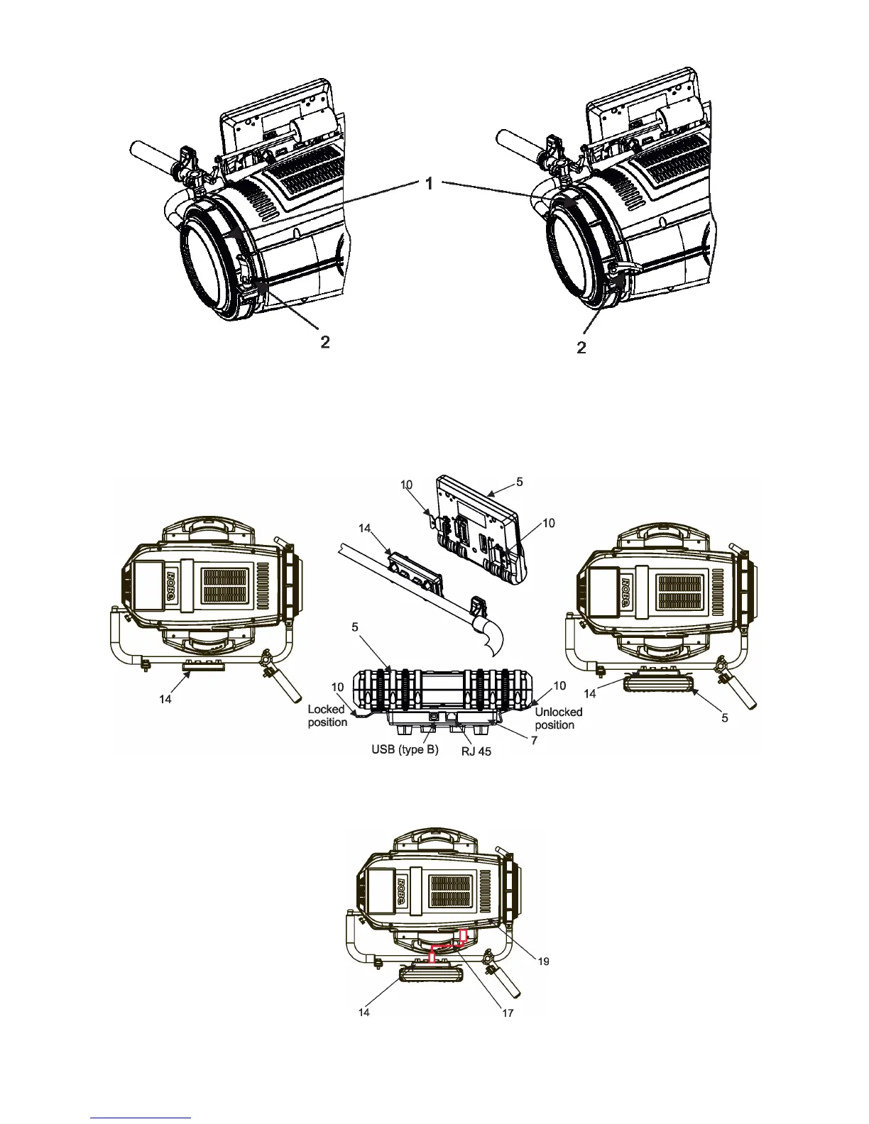 7. Connect the FollowSpot Controller base (14) with the xture head (19) by means of the USB cable (17).