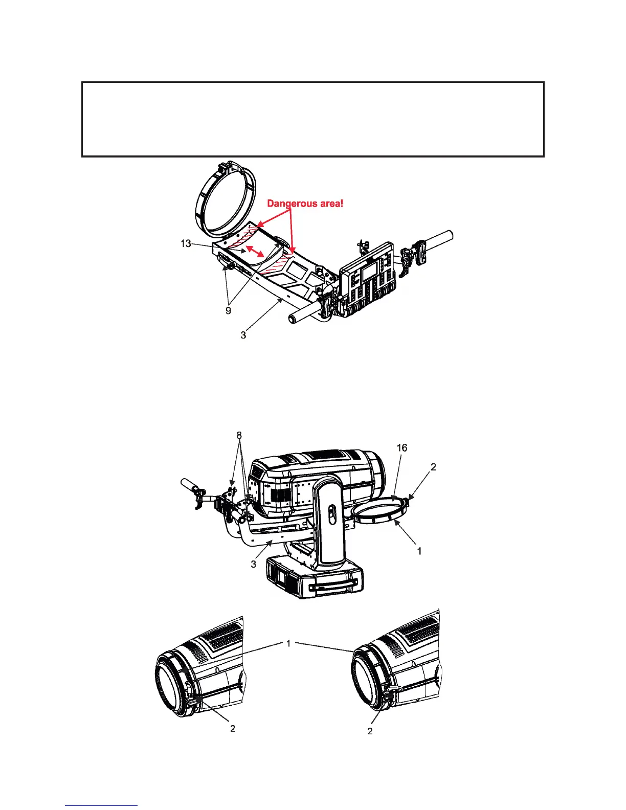 If you install the Robin BMFL LightMaster on the Robin BMFL WashBeam, remove the rubber ring (16) from