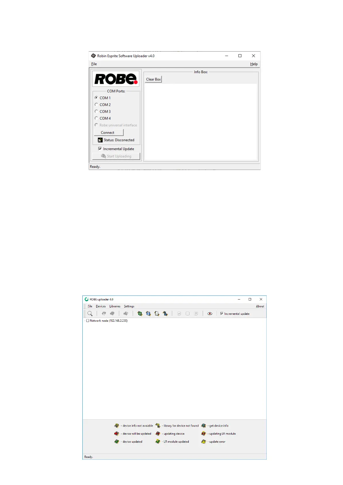 Uploader. It is a software for automatized software update of Robe xtures. It takes advantage of RDM