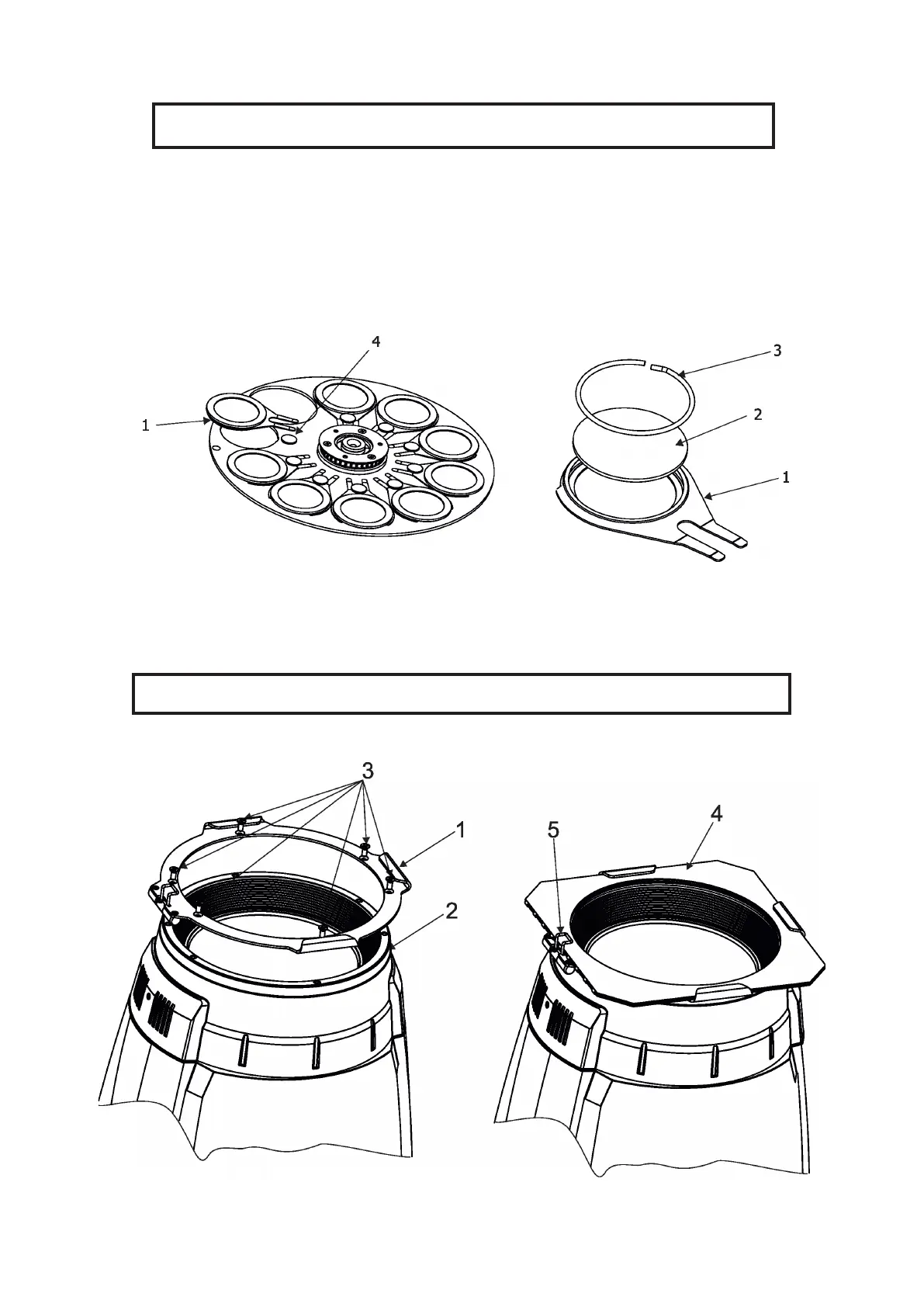 5. Remove the original gobo (2) and insert the new one (glazy side towards the light source). Insert the