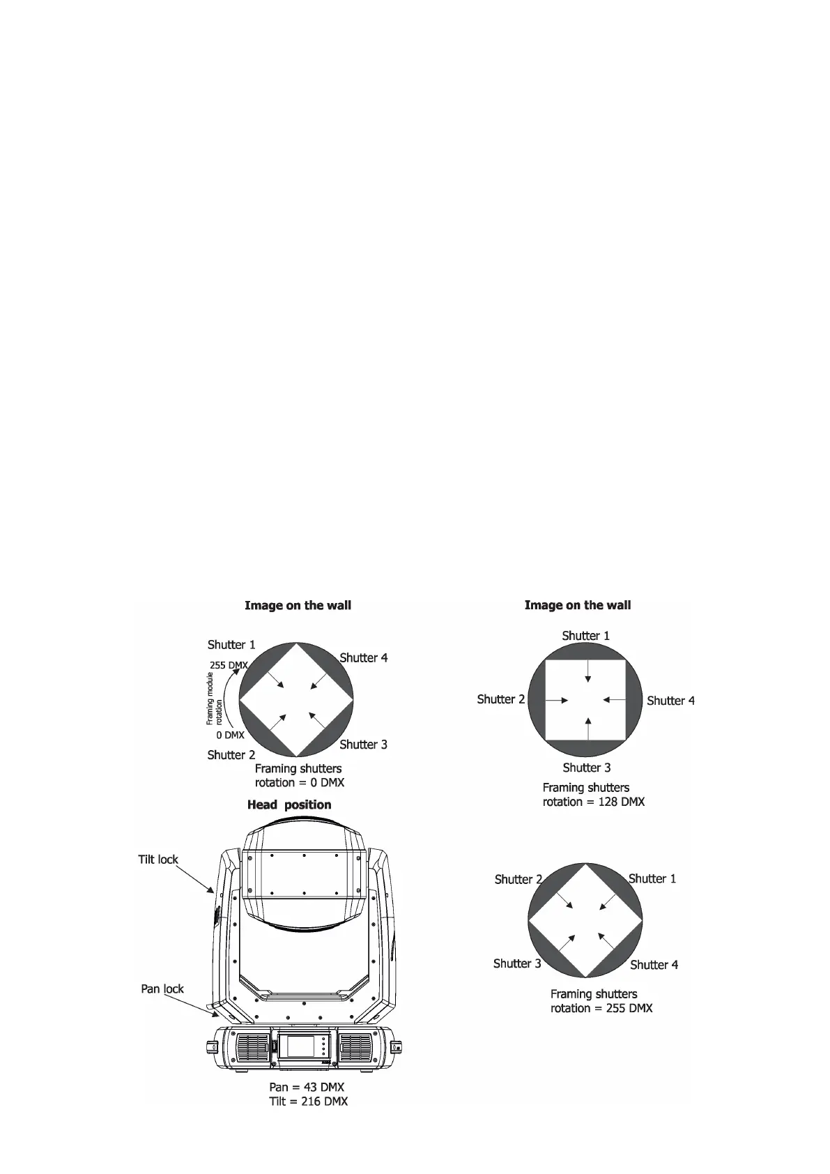 Framing system consists of four framing shutters. There is individual control of each shutter blade position