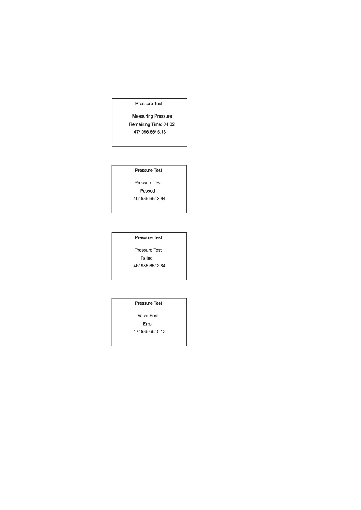 Example of screens of the pressure test: