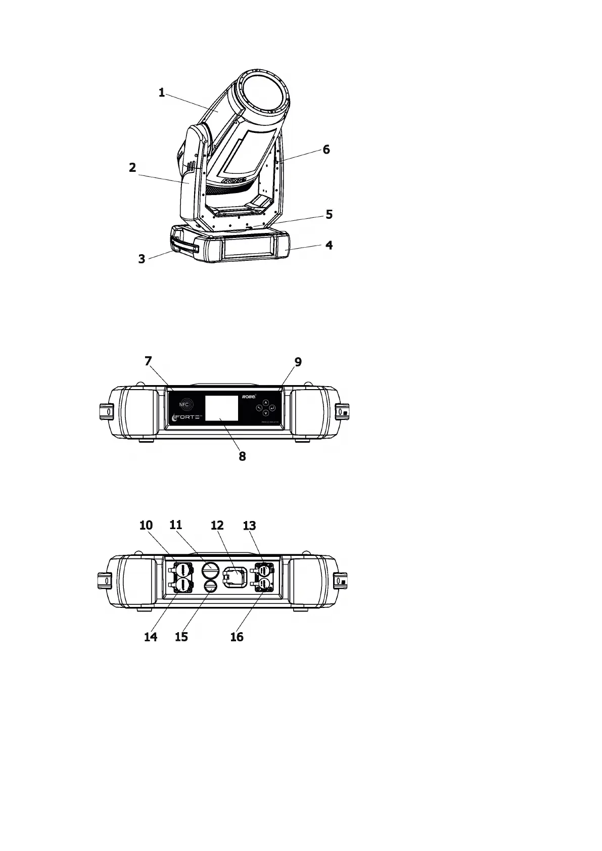Robe ROBIN iForte - 2. Fixture Exterior View; Fixture Components Identification; Front and Rear Panel Connectors