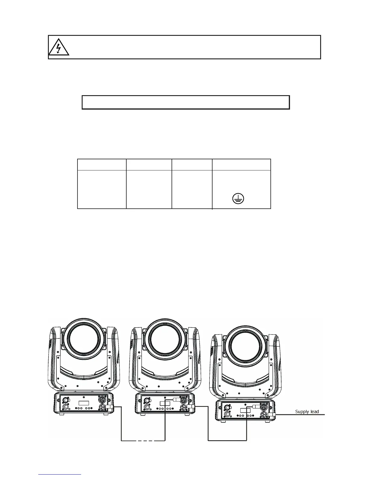 chain using power input and throughput connectors. Needed daisy chain cords are stated in the chapter