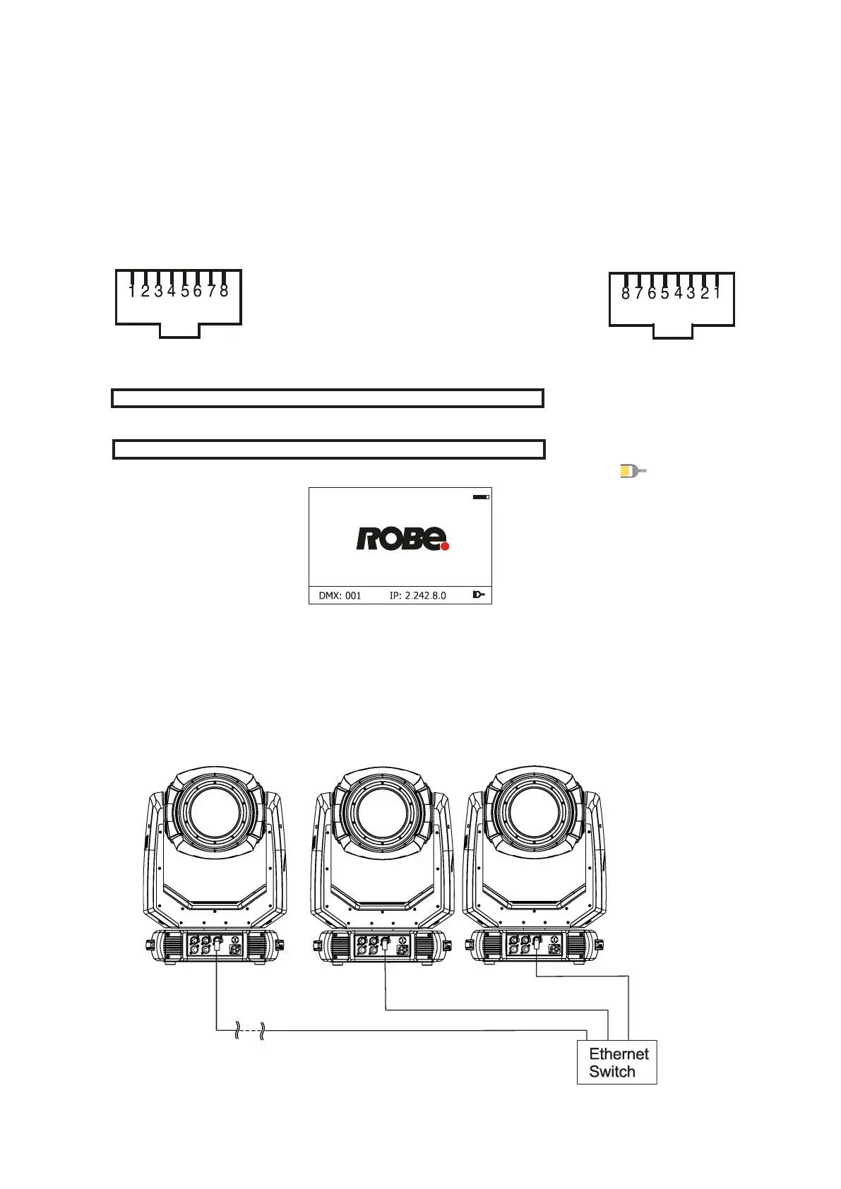 Connect the Ethernet inputs of all xtures with the Ethernet network.