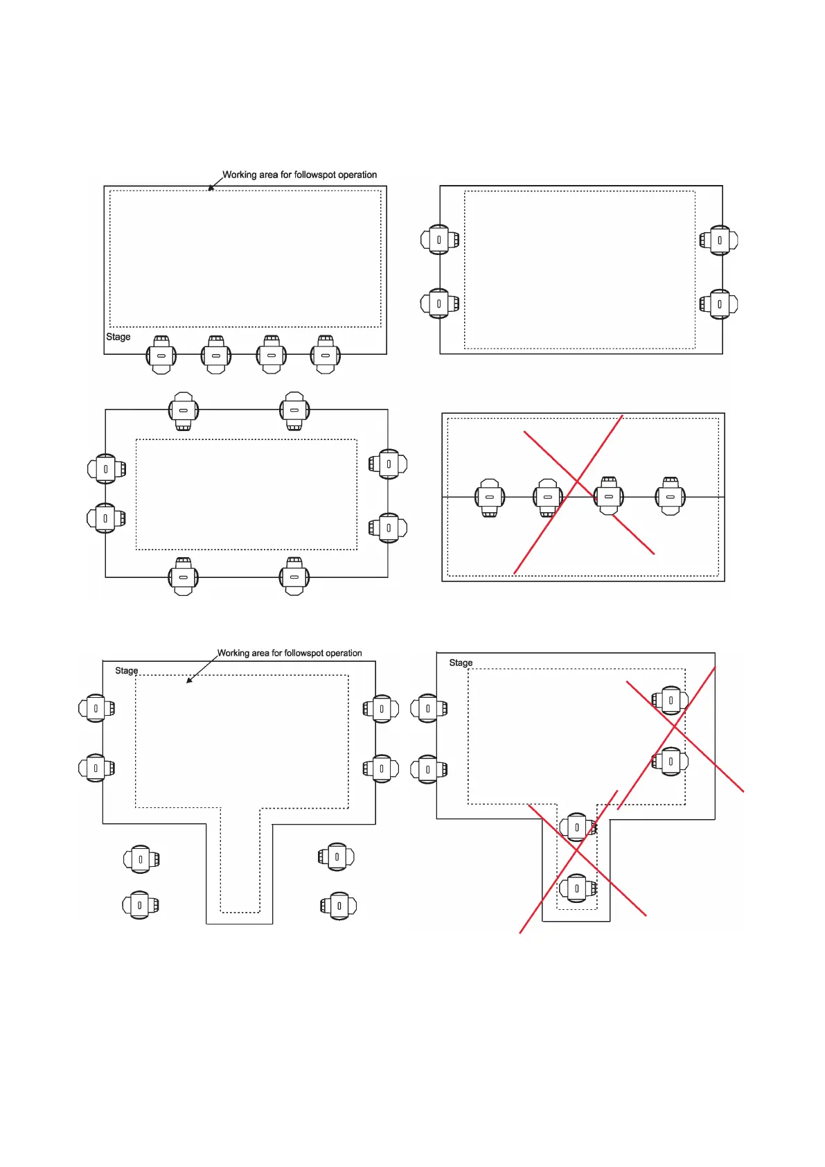 spot operation. The xtures can be placed above stage on one ( two or three) side(s) of the stage or around