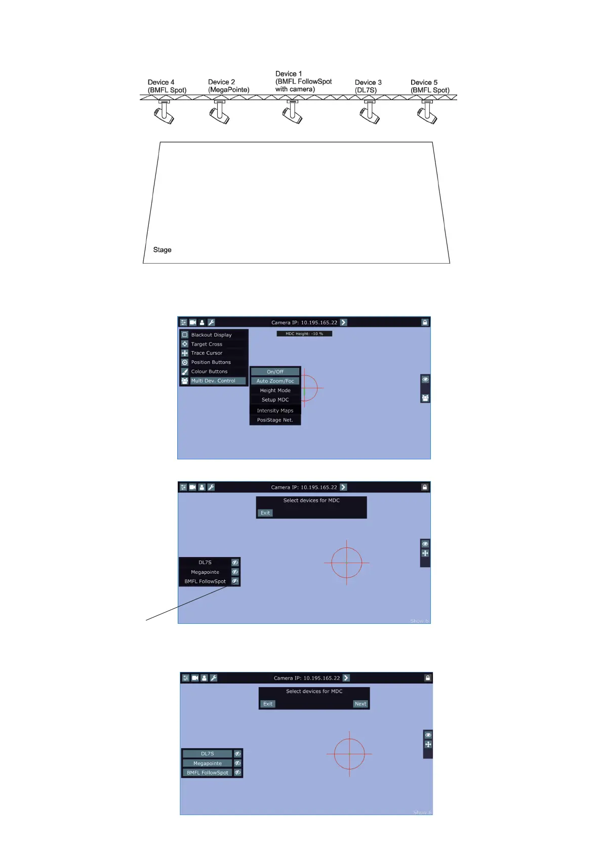 Select xtures which will be used for the multi device control (e. g. DL7S, MegaPointe, BMFL FollowSpot).