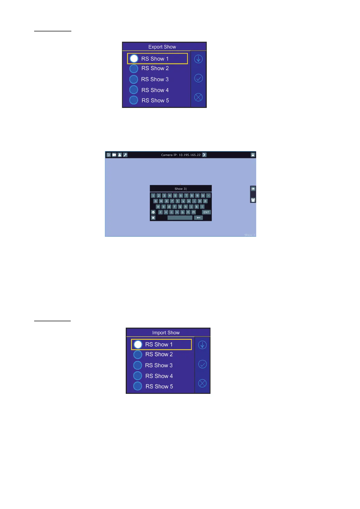 If the import is successful, the notice: "Export Show OK" will appear for a moment on the screen.