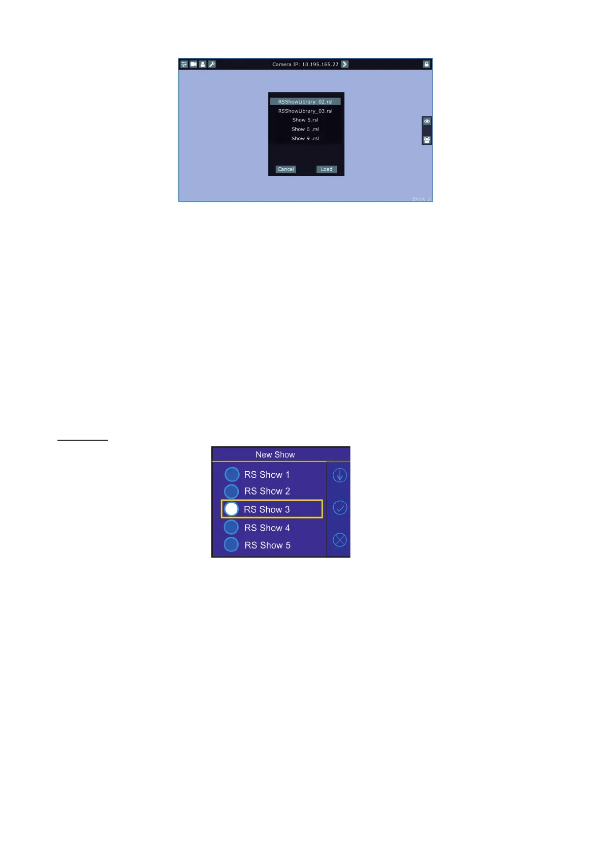 Select a show (e.g. RS Show 3) in which you want to create the new show and conrm it. Original show (saved