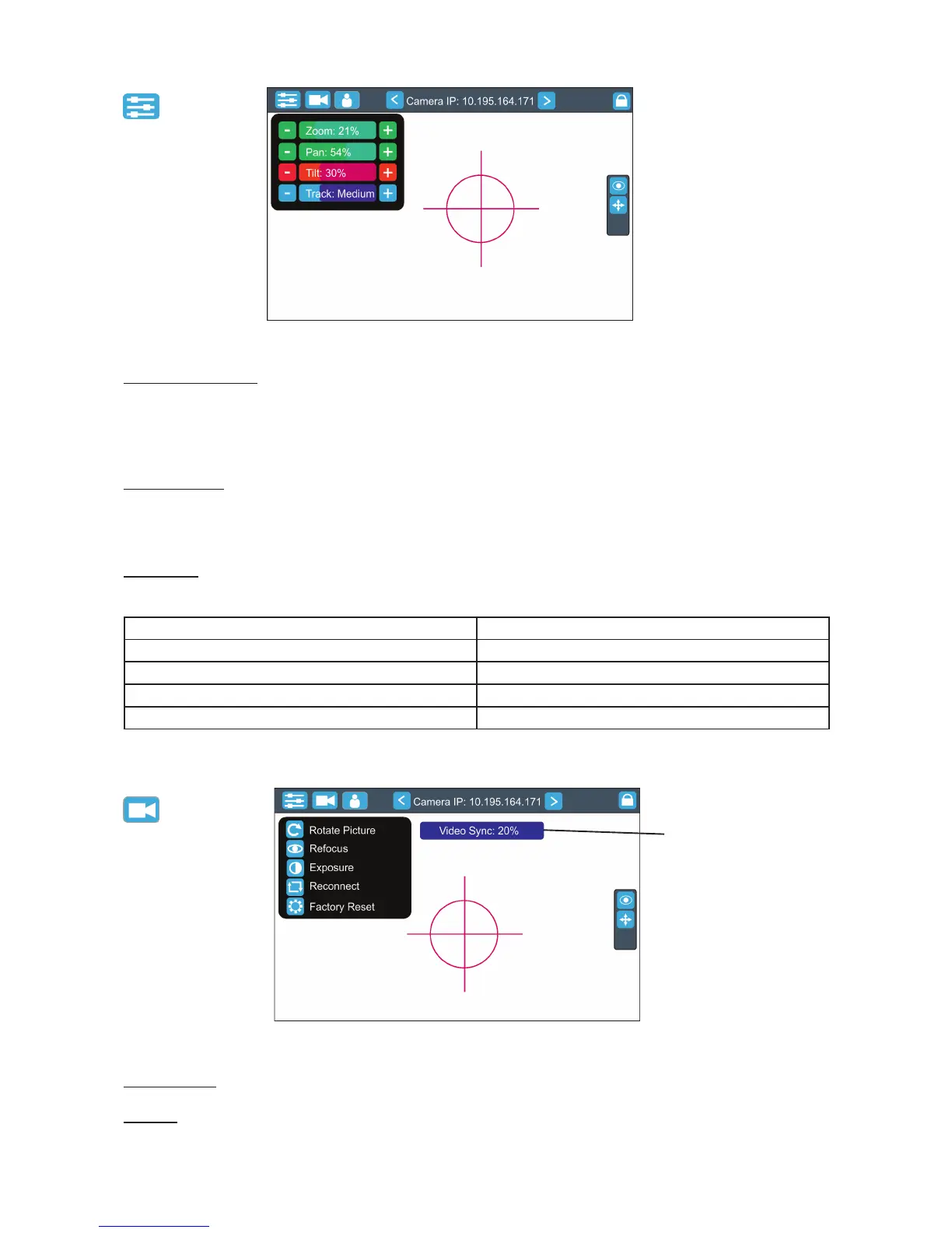 Track slider- use it to set desired level of speed of pan/tilt movement. Each level of the track slider responds to