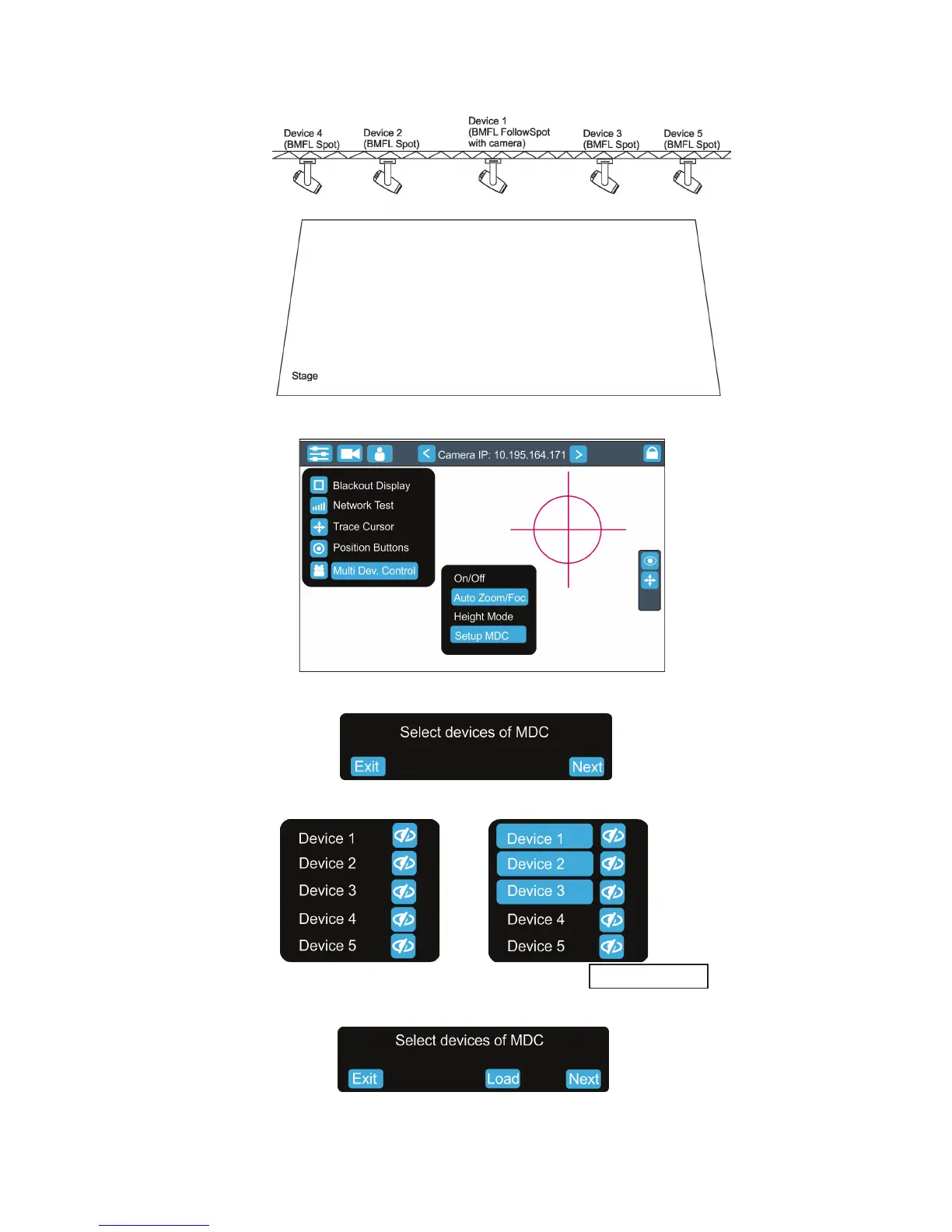 Select xtures which will be used for the follow spot operation (e. g. Device 1, Device 2, Device 3).