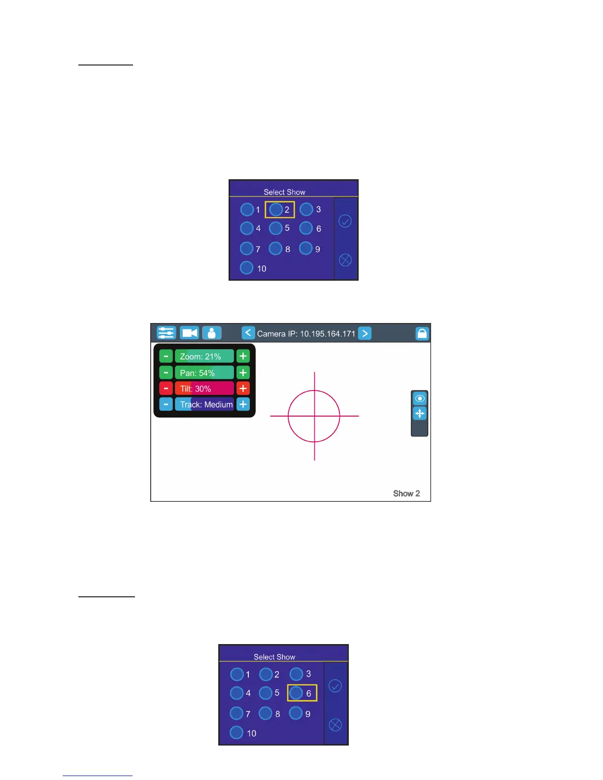Select desired show by touching its button and conrm it. the notice: "Switch To Show OK" will appear for a