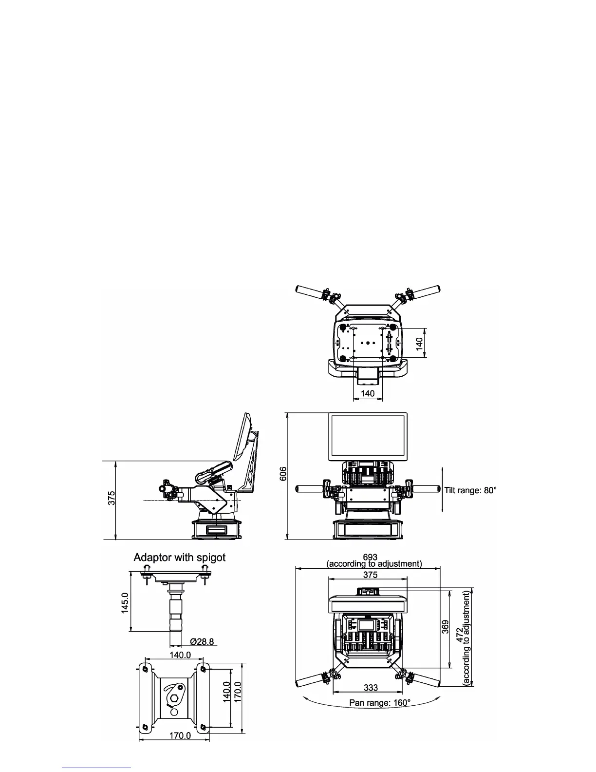 Weights: 16.5 kg (RoboSpot), 1.9 kg (Monitor Shied + Note Holder), 1.7kg (Adaptor), 8.7 kg (Tripod)