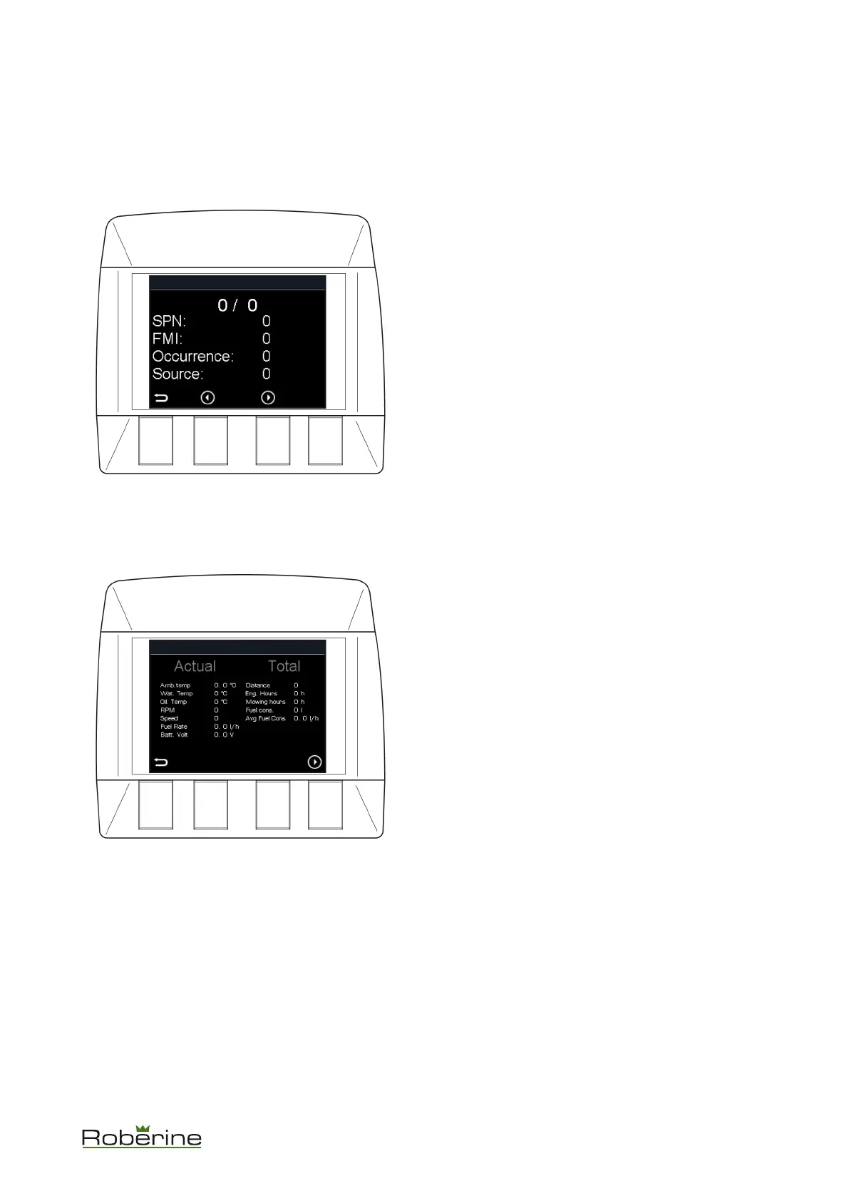 Diesel engine faults are shown on this screen, see the engine manual for an explanation of these faults.