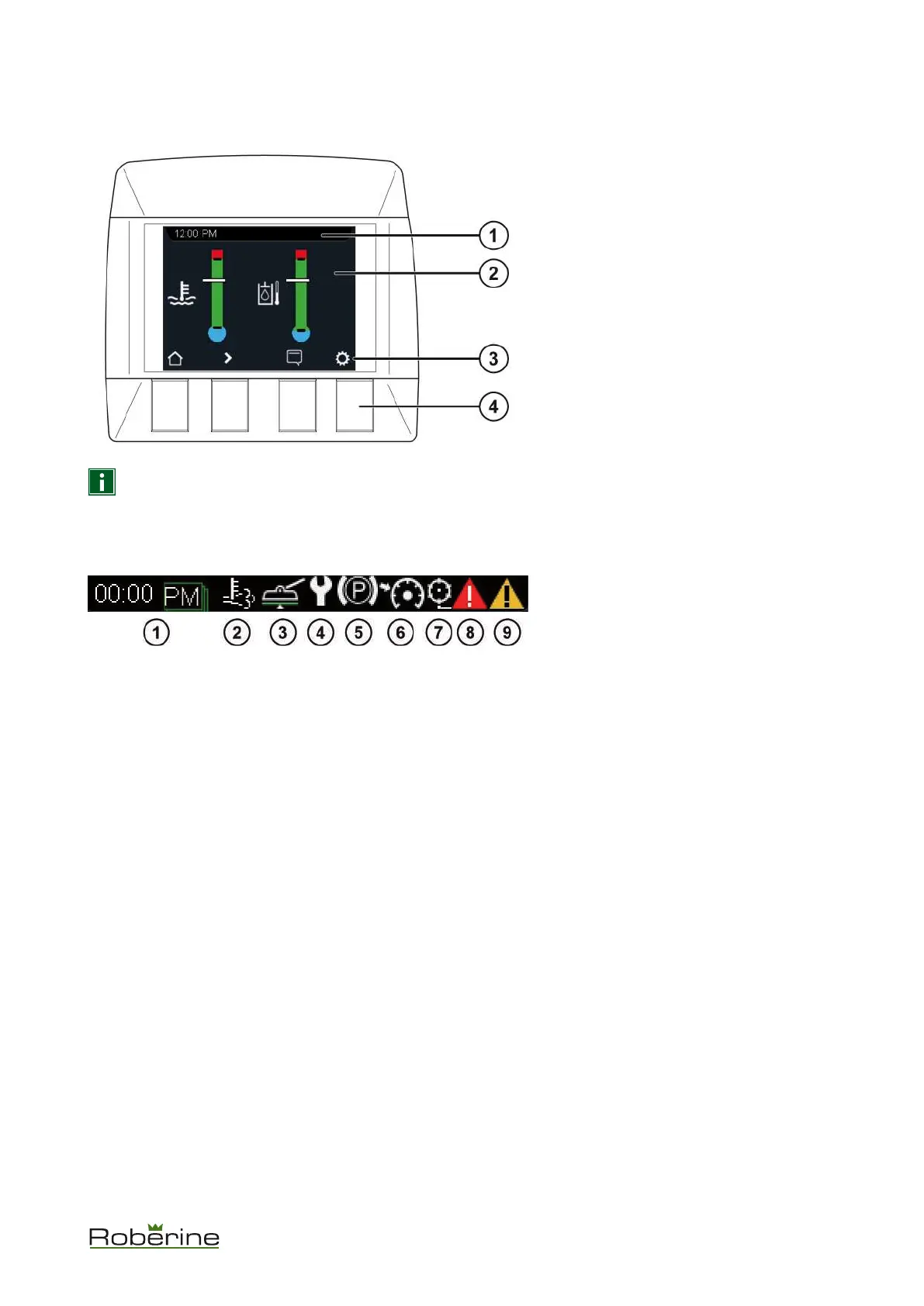 NOTICE Enter a new screen or press a button to activate the button functions (3) bar. It disappears