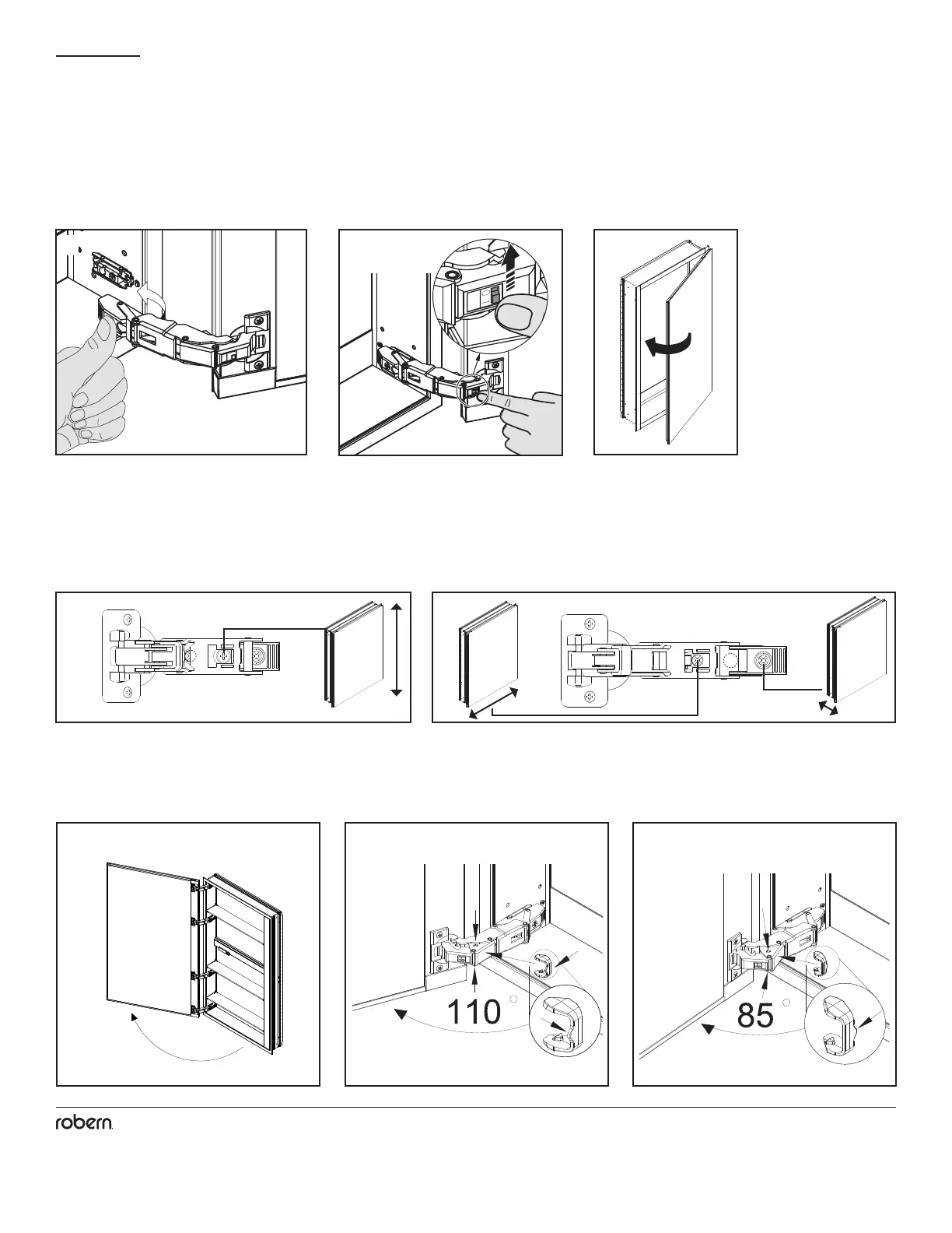 and in and out. Rotate cam screw on mounting plate to adjust door.