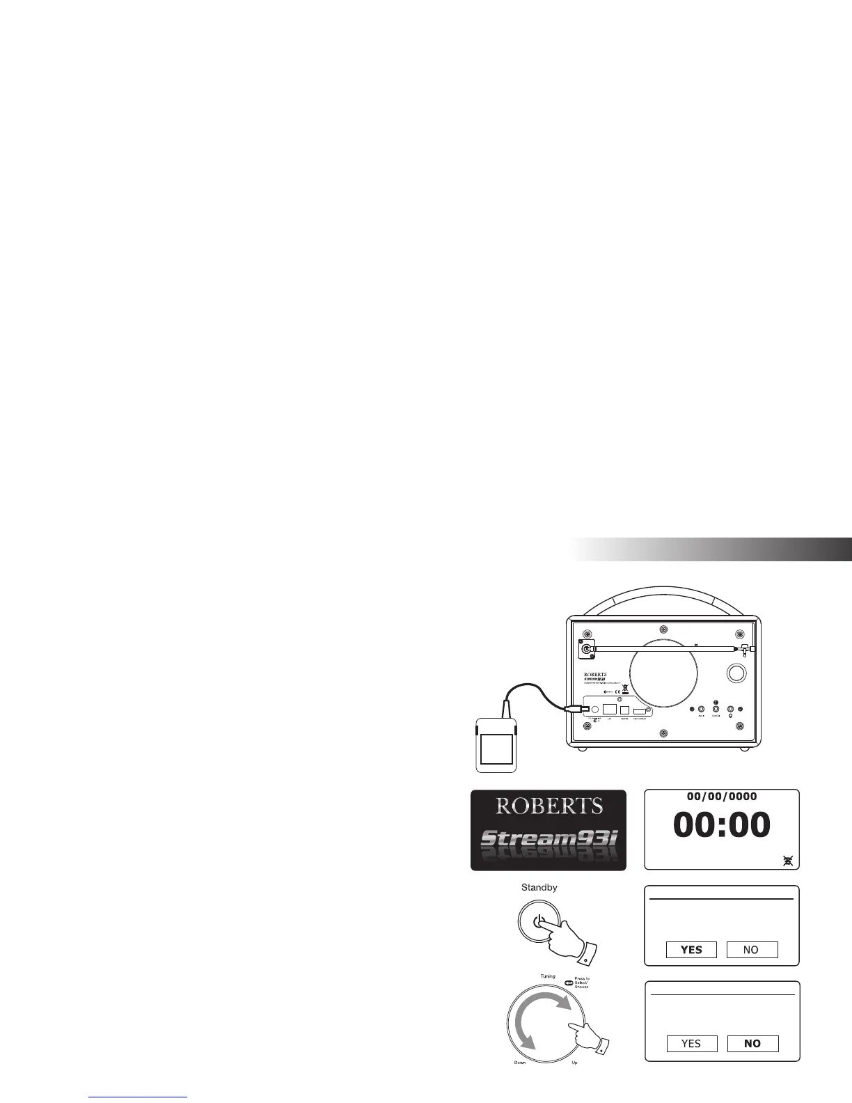 say: 'ROBERTS' and 'Stream 93i'. After a few seconds the radio will then