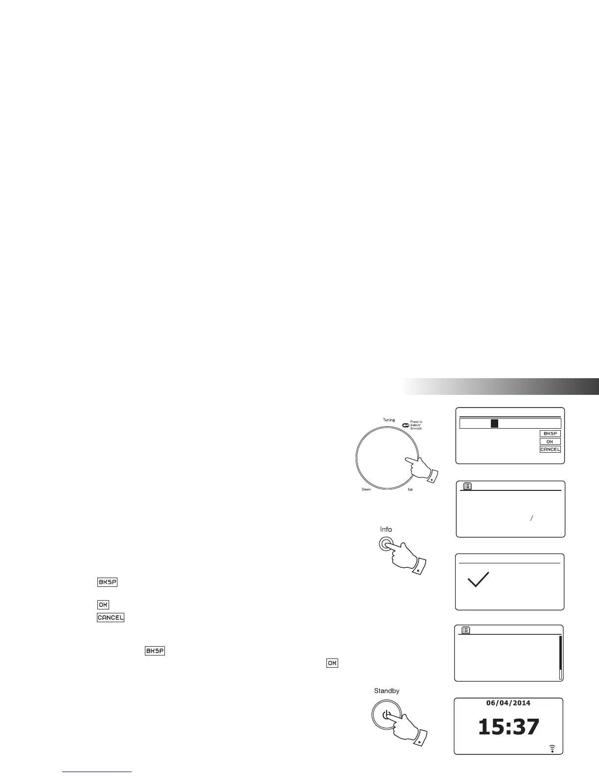 9. To enter the WEP or WPA key, characters are selected and entered using the
