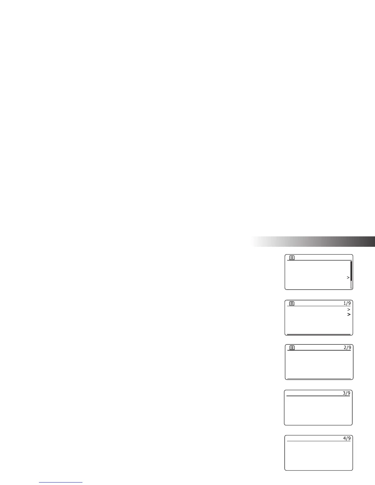 as nine settings screens, shown by the '1 of 9' progress marker in the top right corner of the display. If